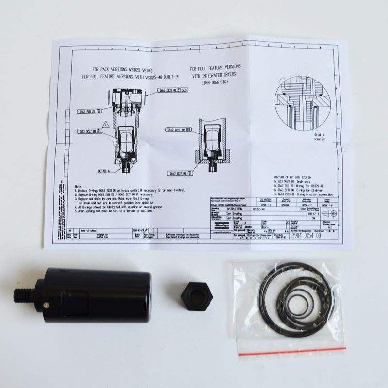 Valvola di drenaggio: scarica automaticamente o manualmente l'acqua condensata separata, i tipi comuni includono valvole di drenaggio di tipo galleggiante e di tempo elettronico.
